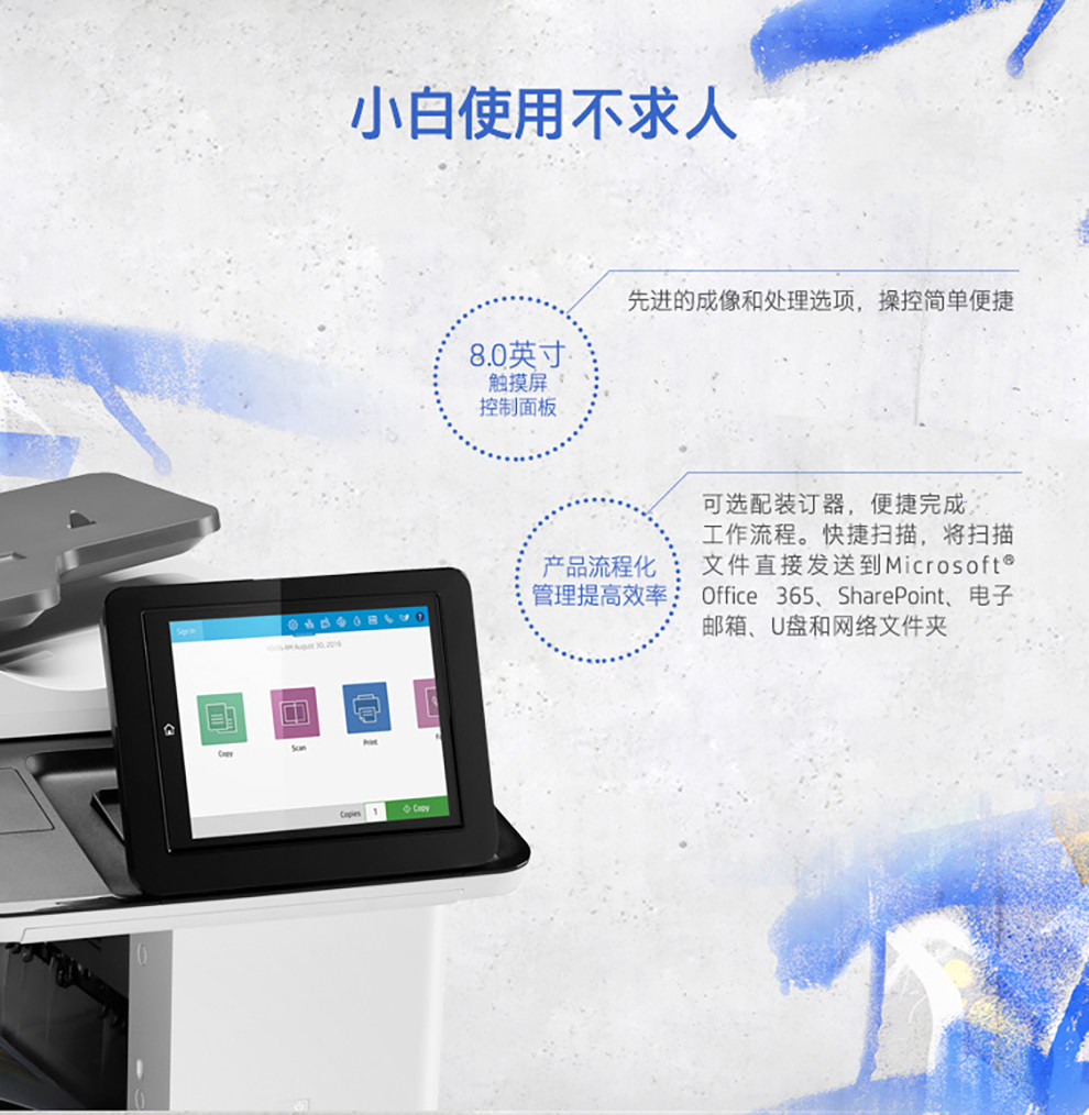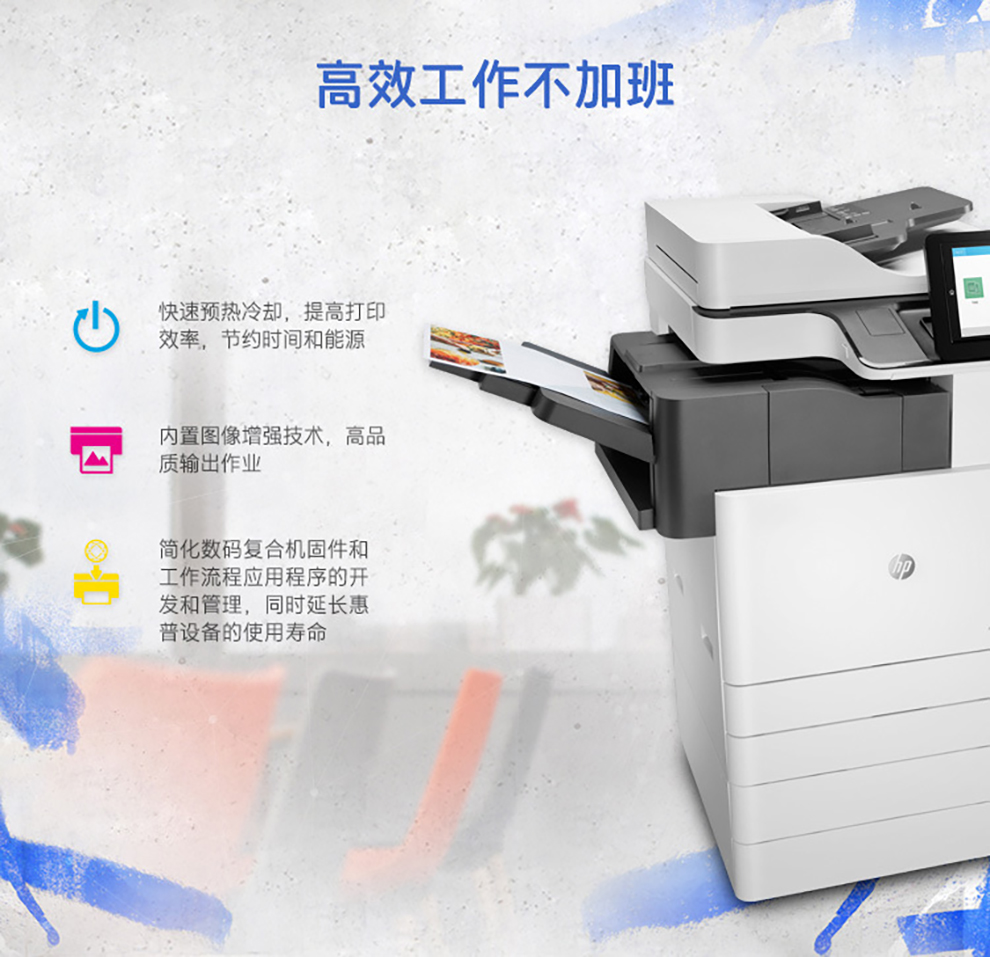 • (全新机)惠普77422dn/A3彩色数码复合机(复印/打印/彩色扫描/双面/有线网络/无线网络/双层纸盒)
