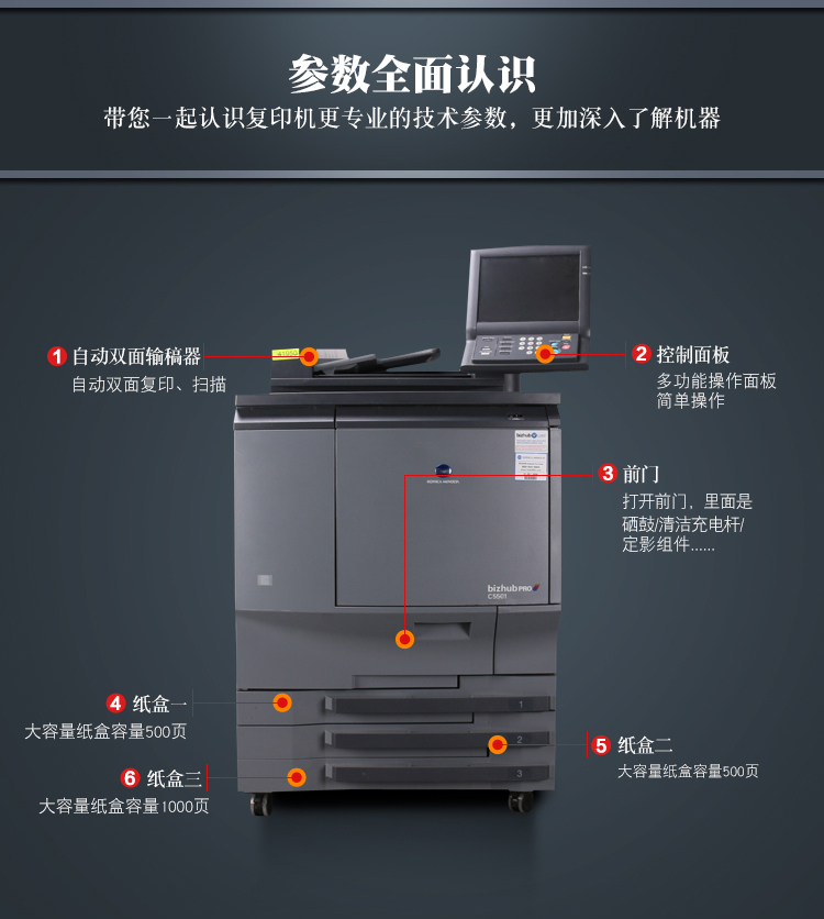 当前位置: >首页 > 办公复印机租赁 > 彩色复印机 > 科美 C6501高速彩色数码复印机/每分钟65页/1200x1200dpi/250克自动翻转 (复印/打印/扫描/双面/自动分页/多页连续进稿器/网络连接)